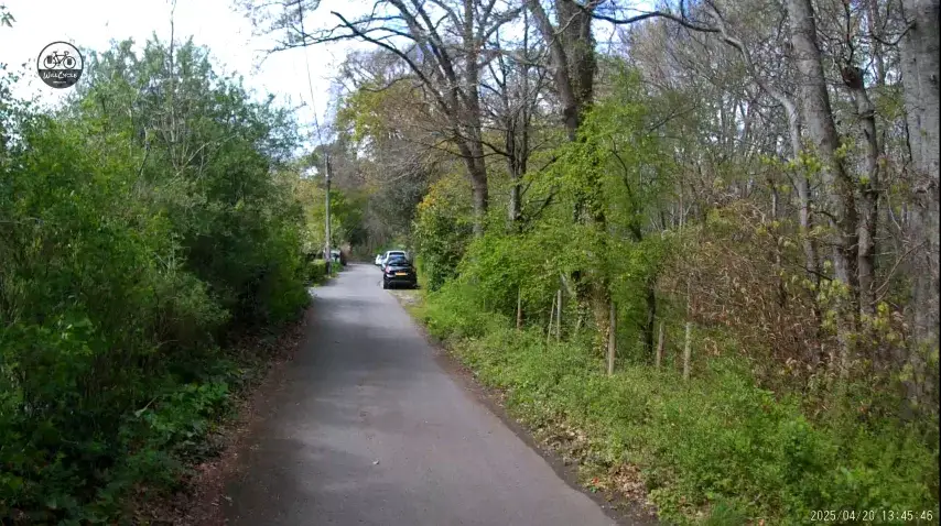 If setting off from the MT Tums café area, the route is almost entirely traffic-free. There is a short section along a normally absolutely quiet lane. Later, after crossing the A38, there’s another fairly short section on a usually quiet lane.