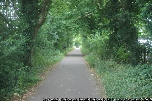 Alban Way is a six mile long traffic-free cycle route along a disused railway line, linking St Albans with Hatfield. As is usually the case with routes along old railway lines, it’s very flat.