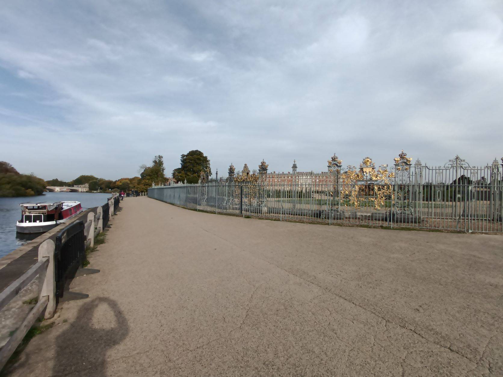 The towpath crosses over at Kingston and a short detour around the Riverside John Lewis store is needed to get back on the Towpath. At Teddington Lock the River becomes tidal and high spring tides can flood the towpath, so do check tide tables beforehand. You will see the tide marks on the boat houses in Richmond. There is a café at Hampton Court Palace. Cafés and other facilities are available at Richmond, Mortlake, Barnes and Putney.