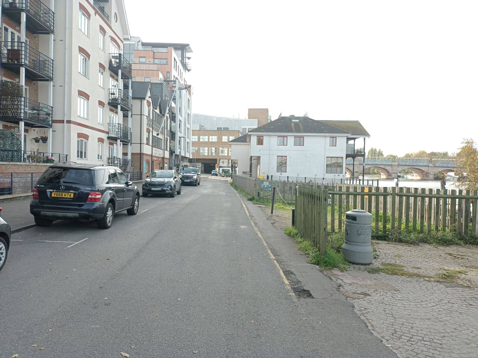 At Hampton Court the towpath crosses over via Hampton Ct Bridge. Access to the bridge is via a busy road, so care must be taken here.