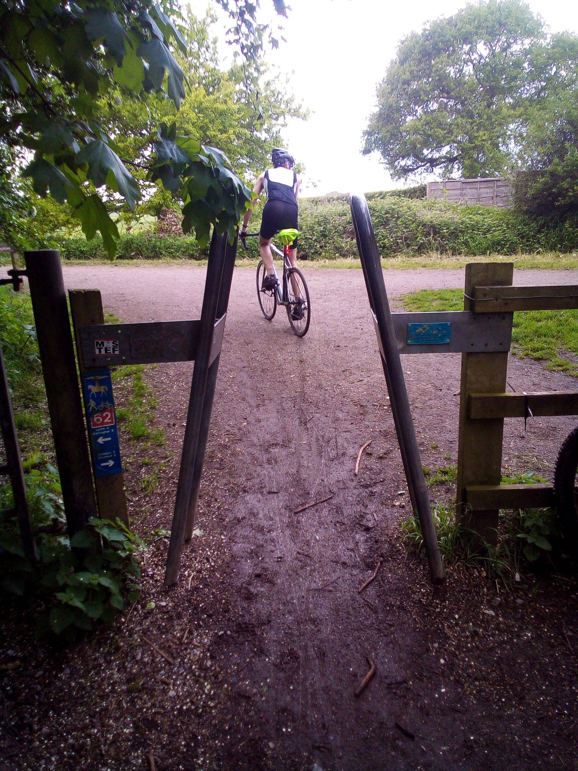 The TPT is littered with the dreaded A-frames, plus several other types of barrier. Trikes and most cargo bikes will not get through. A touring bike with panniers can just about squeeze through.