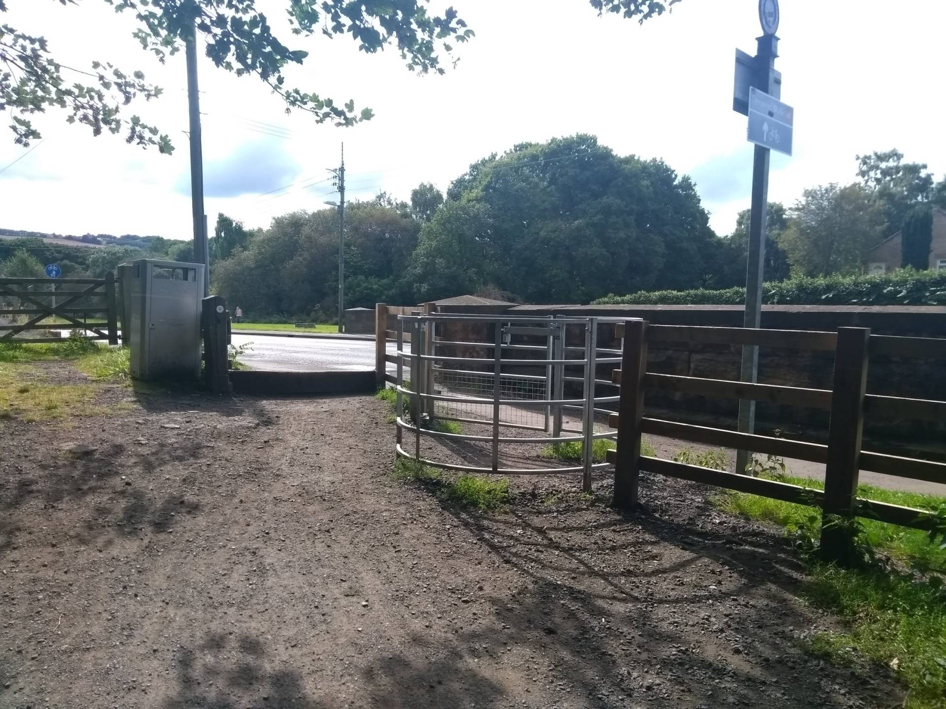There is an access barrier in Rowlands Gill where the path joins the road, but there is a gap in the fence replacing an old kissing gate which can be ridden through.