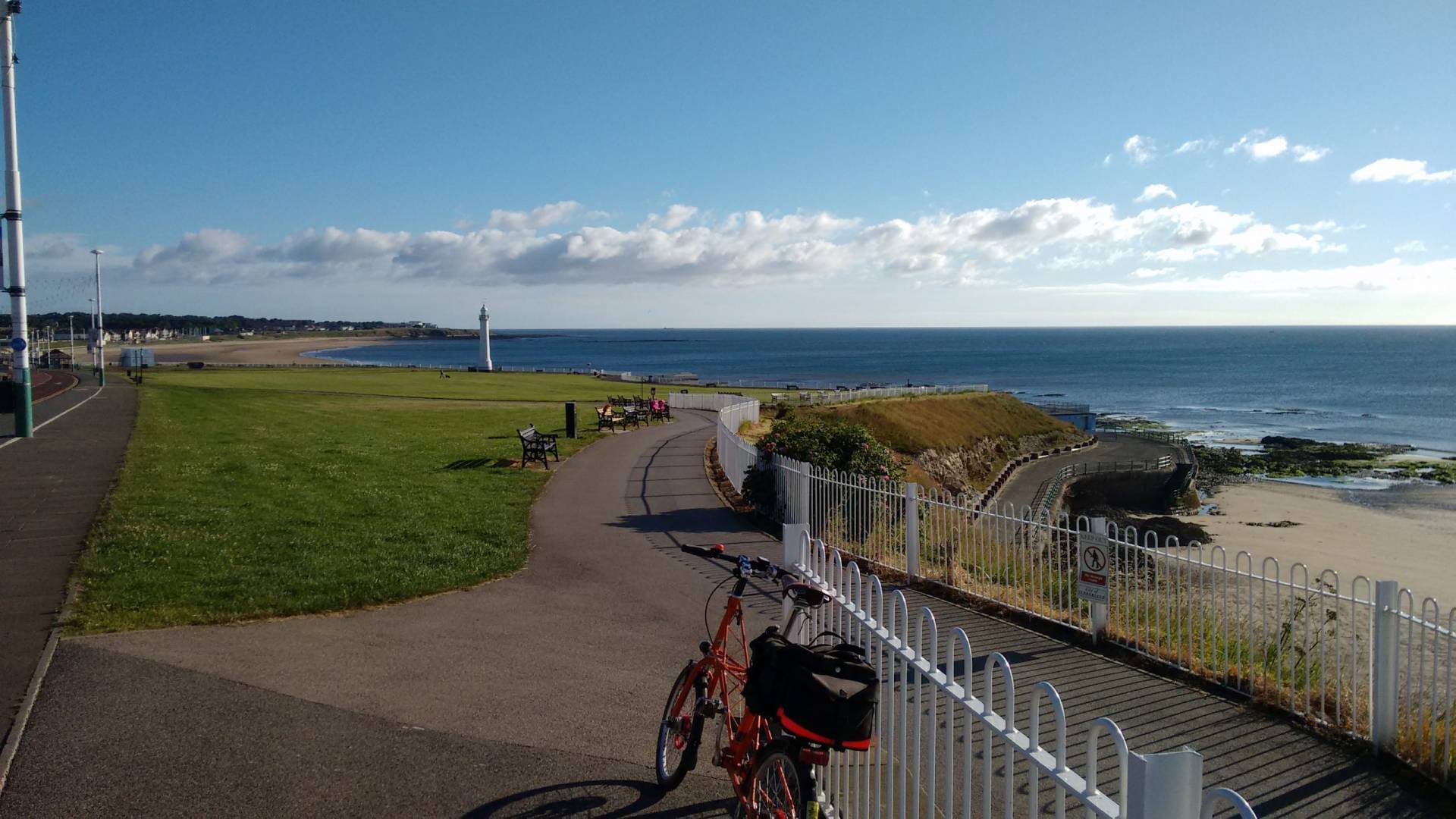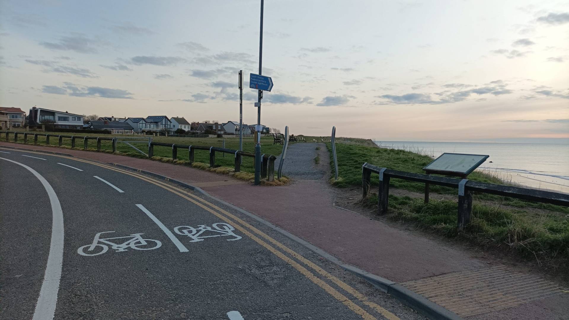 The only section that isn’t tarred is the stretch of coastal path from Sea Lane to Ash grove in Whitburn. That path is mainly wide and grit finished, although the short section away from the coast to Ash grove is narrower and bumpier. All parts are rideable in all weathers, even on a road bike.