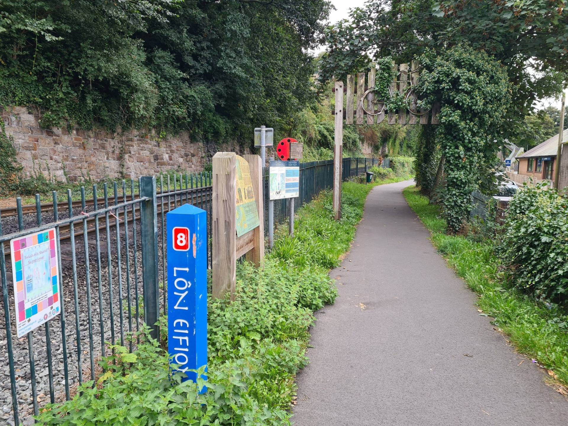 There are also toilets at Caffi Gerlan (just off the trail, at 5 miles). Finally, there are toilets at the Brencir Garden Centre café (open daily between 10am and 4pm) but that involves a further 300 metres cycling down the A487.